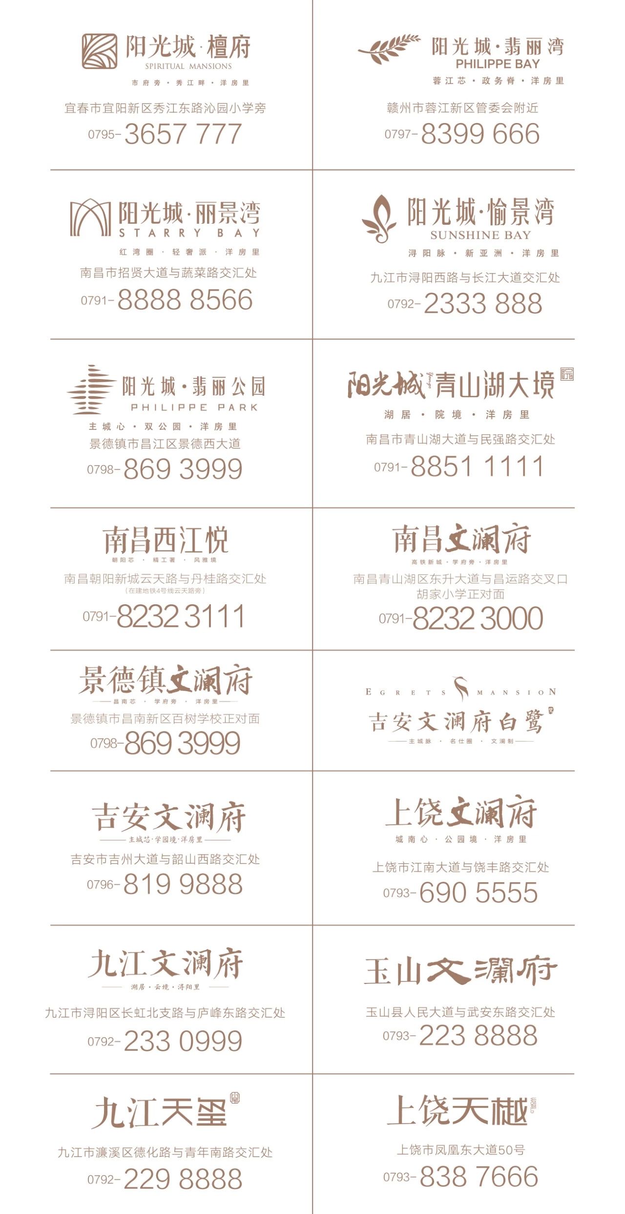溫馨提示:本項目推廣名為“陽光城富力中奧·文瀾府”,備案名為“九江文瀾府”。本宣傳資料僅為要約邀請,所示圖片及文字僅供形象宣傳之用,且均來源于網絡,具體內容以買賣雙方簽訂的合同及政府最終審批為準。九江富力志盛置業有限公司保留對本資料修改的權利,敬請留意最新資料。發布時間2020年12月。預售證號(2019)第124、125、167、285號,(2020)第29號。
