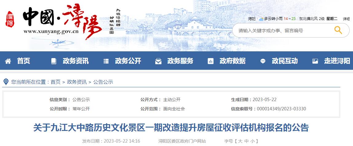 昨日,中國潯陽網正式發(fā)布《關于九江大中路歷史文化景區(qū)一期改造提升房屋征收評估機構報名的公告》,詳情如下: