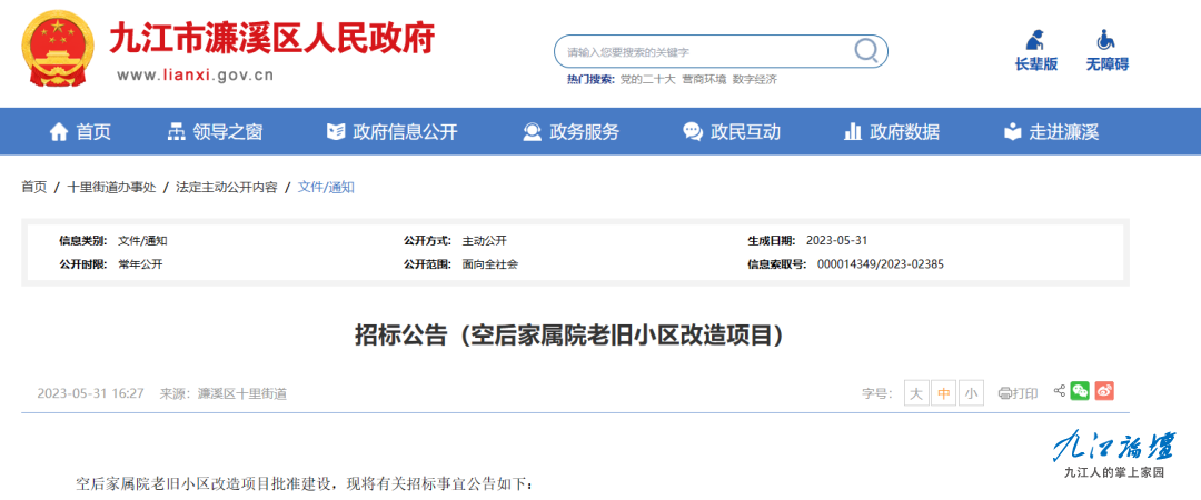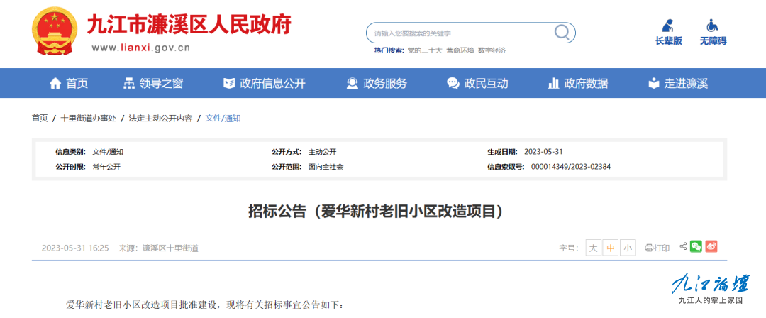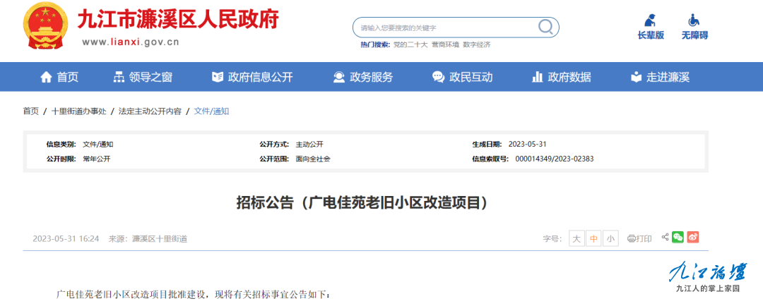 近日,從江西省公共資源交易平臺及濂溪區(qū)官方網(wǎng)站獲悉,濂溪區(qū)鐵四局、廣電佳苑、愛華新村、空后家屬院老舊小區(qū)將升級改造!