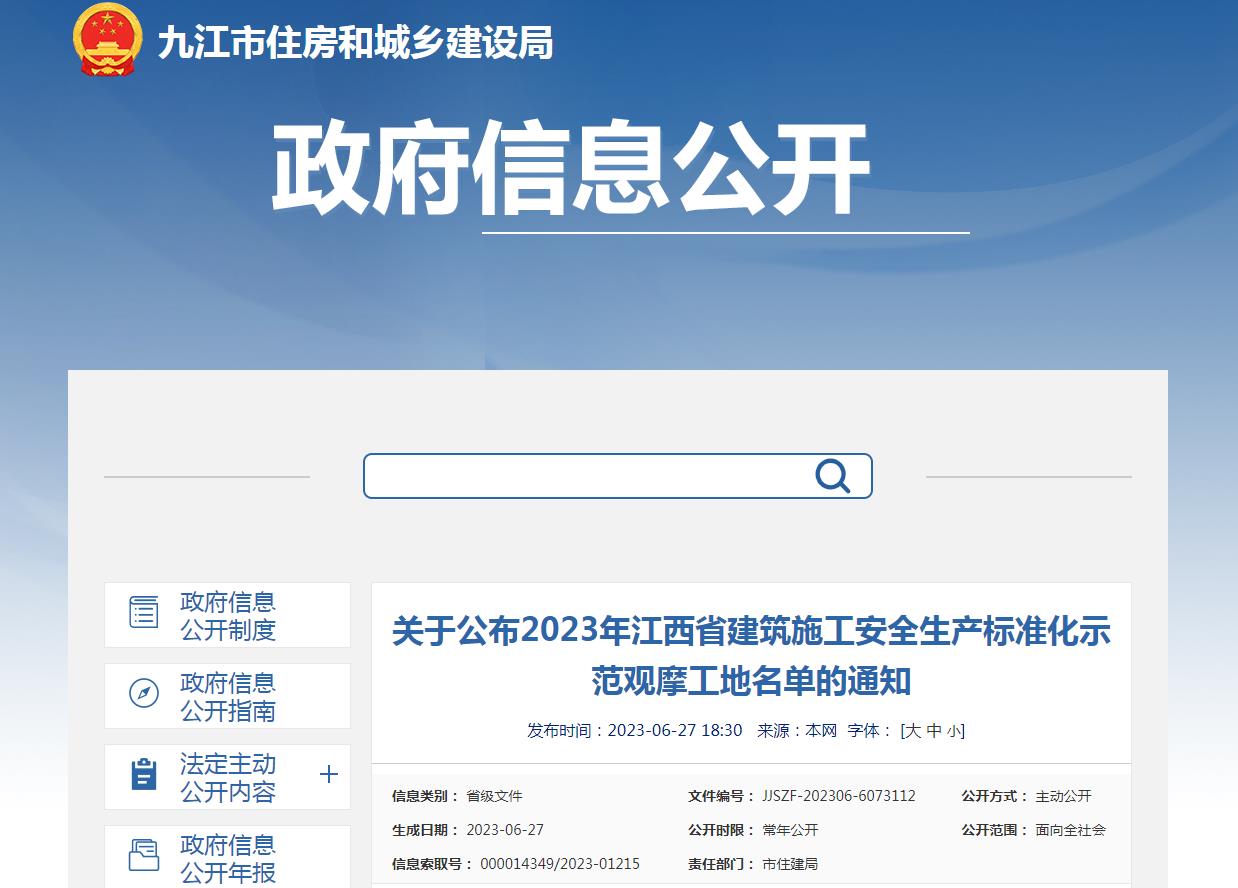 39個項目入選!九江市公布2023年度第一批建筑施工安全生產標準化示范工地名單